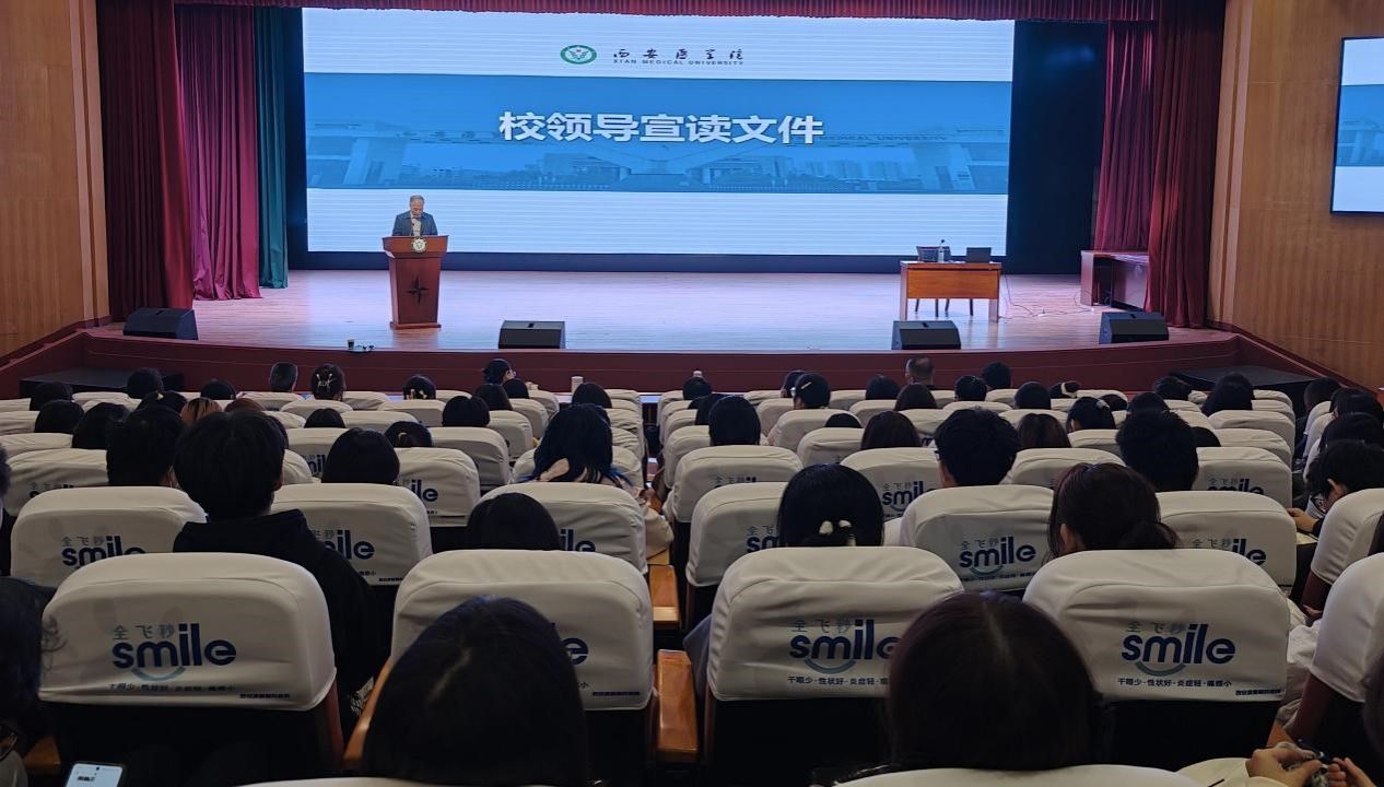 党委副书记、纪委书记、监察专员田民政宣读《西安医学院全面加强和改进新时代美育工作实施方案》文件