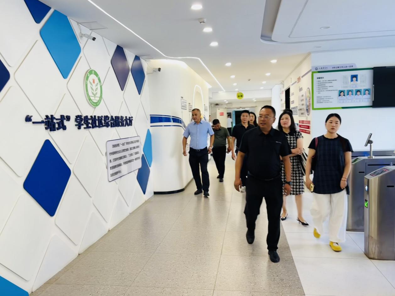 首先参观了“一站式”学生社区总站,学生处介绍了“一站式”学生社区的运行模式与服务功能以及建设的总体情况。随后,分别走访了临床医学院“一站式”学生社区分站、“5G+”数字教育中心。