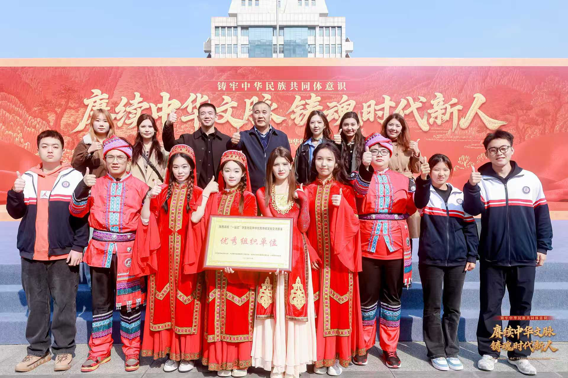 10月26日,由省委统战部、省委教育工委、省民宗委、团省委联合主办的“铸牢中华民族共同体意识——赓续中华文脉,铸魂时代新人”2025年陕西高校“一站式”学生社区中华优秀传统文化交流展演活动在西安交通大学兴庆校区举办。我校作为参展单位,组织来自仡佬族、塔吉克族、维吾尔族等10余名少数民族学生代表赴活动现场交流展示,并获评优秀组织单位。