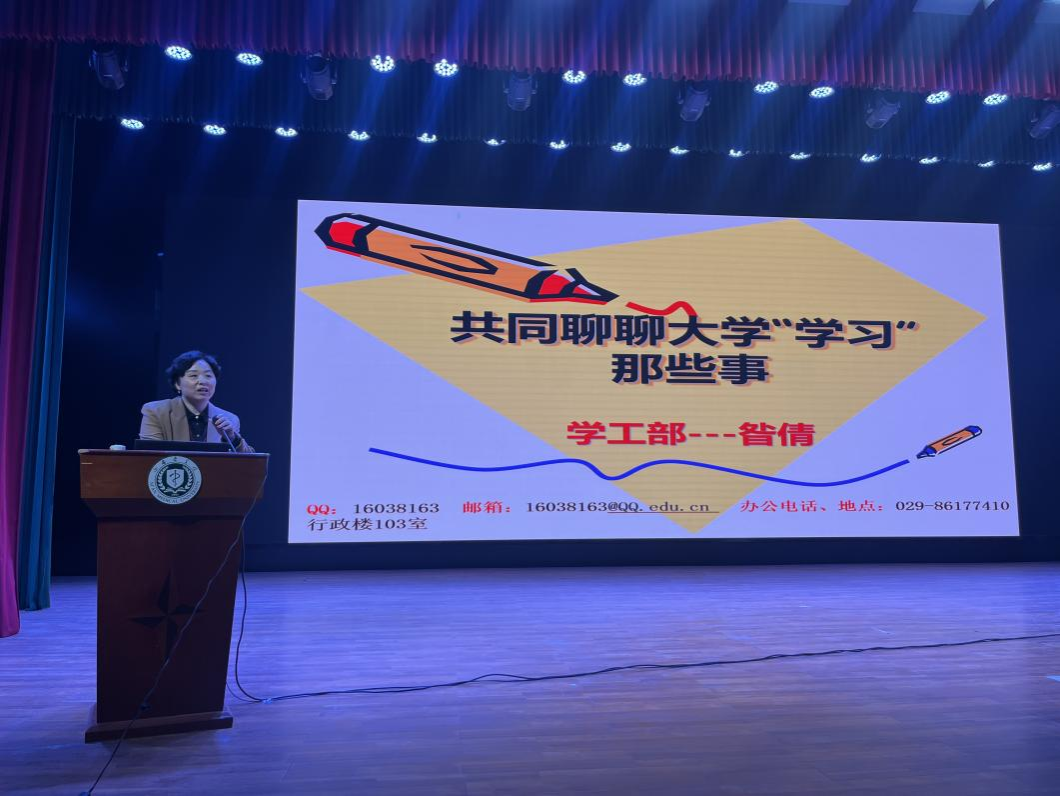 昝倩以《聊聊大学学习那些事》为题作专题报告。她以歌曲“辞家千里又千里,务必争气再争气”为切入点,深刻阐释“争气”的时代内涵与现实意义。通过系统比较大学与中学阶段在学习内容、性质、环境及方式等方面的差异,她指出,大学之“大”集中体现于精神格局、学问广度、学术深度、大师引领和责任担当五个维度,是知识创新与实践应用的关键场域。昝倩勉励全体学员牢固树立自主、全面、创新、终身的学习理念,大力弘扬勤奋、严谨、求实、创新的学习精神,科学规划学习路径,不断拓宽知识视野,积极参与社会实践,持续提升能力素质,努力适应新时代发展要求。讲座现场互动踊跃、气氛热烈,取得良好成效。
