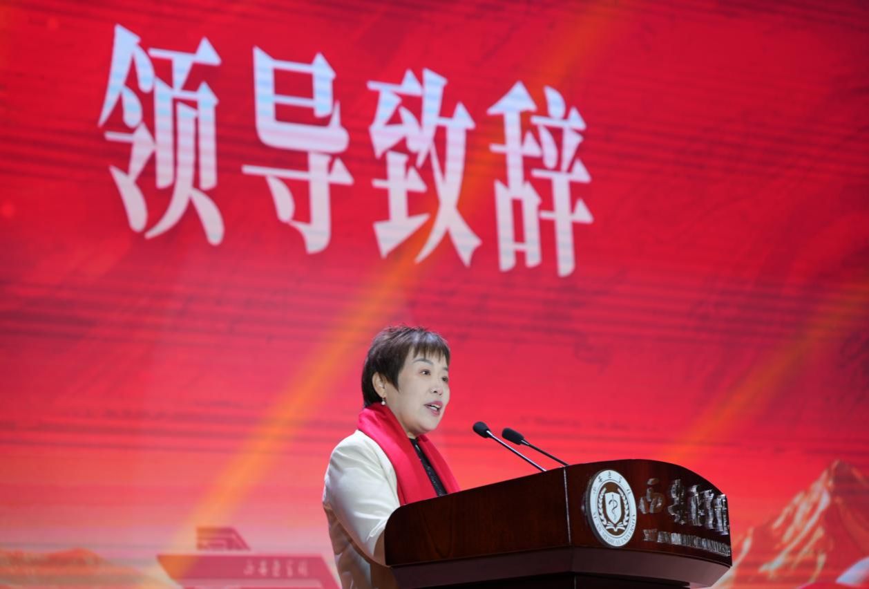 党委副书记李雪萍在致辞中向受表彰的先进集体和个人表示热烈祝贺,向长期耕耘在学生工作一线的全体辅导员和老师致以诚挚问候。她指出,2025年学校始终以“立德树人”为根本,紧扣学生成长成才核心目标,在学业科研发展、综合素质提升、实践服务拓展等方面搭建多元培育平台,推动育人链条持续延伸,育人成果竞相涌现。她高度肯定了获奖集体和个人的奋进实绩,并向全体同学提出四点希望:一是以理想信念为帆,在胸怀大局中找准人生方向。二是以勤学笃行为桨,在深耕细作中练就过硬本领。三是以担当奉献为责,在服务社会中彰显青春本色。四是以品德修身为基,在涵养正气中锤炼高尚情操。