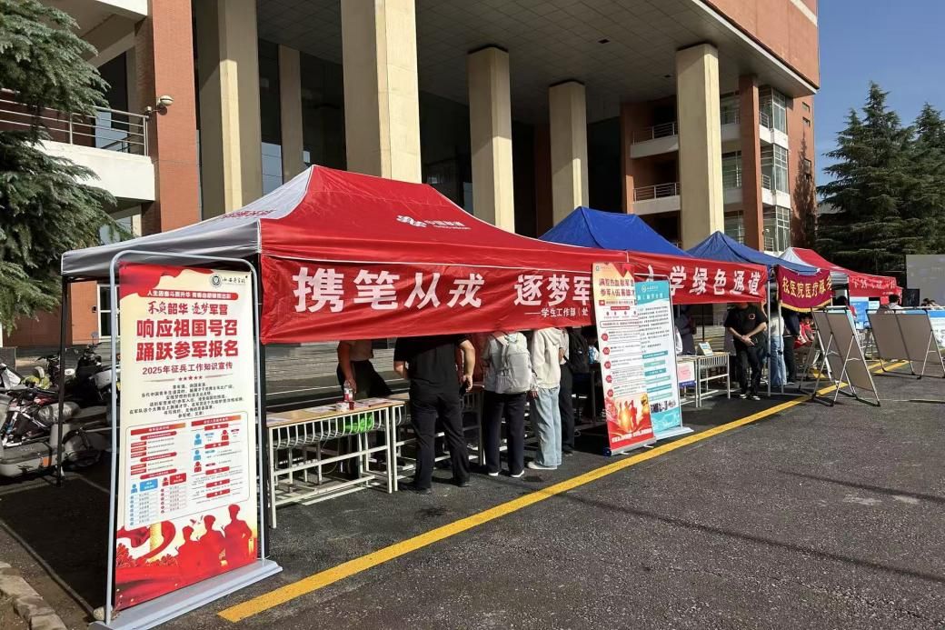 宣传动员“精准化”,参军氛围更加浓厚。学校在“一站式”学生社区设立征兵咨询服务站,在毕业生招聘会现场开设征兵政策咨询点,实现周周有咨询、班班有宣讲。组建优秀退役大学生士兵宣讲团,邀请光荣返校的学长学姐深入各学院、班级,分享军旅成长故事,用身边事感动身边人。通过主题班会、线上群组推送等方式,进行“一对一”政策解读和动员,重点讲清医学专业人才在部队卫勤保障、战场救护中的独特价值和广阔发展前景,全年线上线下覆盖学生近万人次。