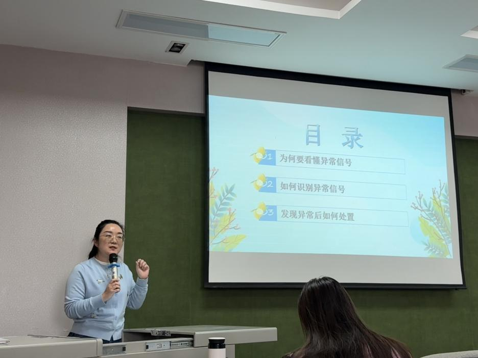 关慕桢以“看懂异常信号——辅导员必备大学生异常心理识别与处置能力”为主题,从“为何要看懂异常信号”“如何识别异常信号”“发现异常后如何处置”三个核心维度展开系统讲解。她清晰界定了心理健康与心理异常的评判标准,提出心理健康需要满足 “本人不痛苦、他人不感异常、社会功能良好” 的基本要求,阐释了从心理健康到心理问题再到精神疾病的连续谱特征。同时介绍观察法、访谈法、评估法等科学识别方法,指导辅导员从认知、情感、行为维度,通过横向比较、纵向分析结合专业量表评估,精准捕捉学生心理异常信号。