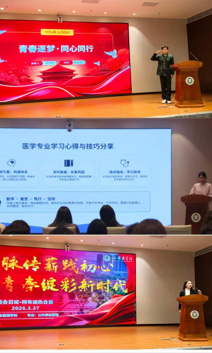 最后,临本2516班麦合丽娅·买合木提江、药本2366班向芯华、公管2421班美合日班·阿布迪热合曼三位同学依次上台,从学习学业、军旅生涯、民族团结、社会实践等方面,向同学们讲述了自己学习成长经历及所取得的成绩。看到一张张鲜红的奖状和获奖证书,大家非常振奋,纷纷表示,我们不仅要向英雄榜样学习,更要向身边的榜样看齐,不断提升个人综合素质和能力,力争将来也成为学弟学妹们的榜样。