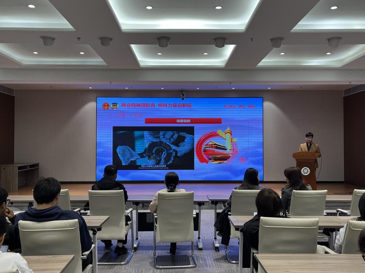 本次活动以“两会精神领航向榜样力量启新程”为主题。少数民族专职辅导员阿布勒提普·木塔力普通过“八个一”带领大家聚焦全国两会核心要义与“十五五”规划发展蓝图,结合政府工作报告中的关键数据和政策亮点,对2026年全国两会丰富内涵进行了系统解读。精美的PPT、生动的讲解和直观的影像资料,使同学们对国家发展战略有了更加清晰和深刻的认识,也让他们深刻感受到自身肩负的时代责任和历史使命。