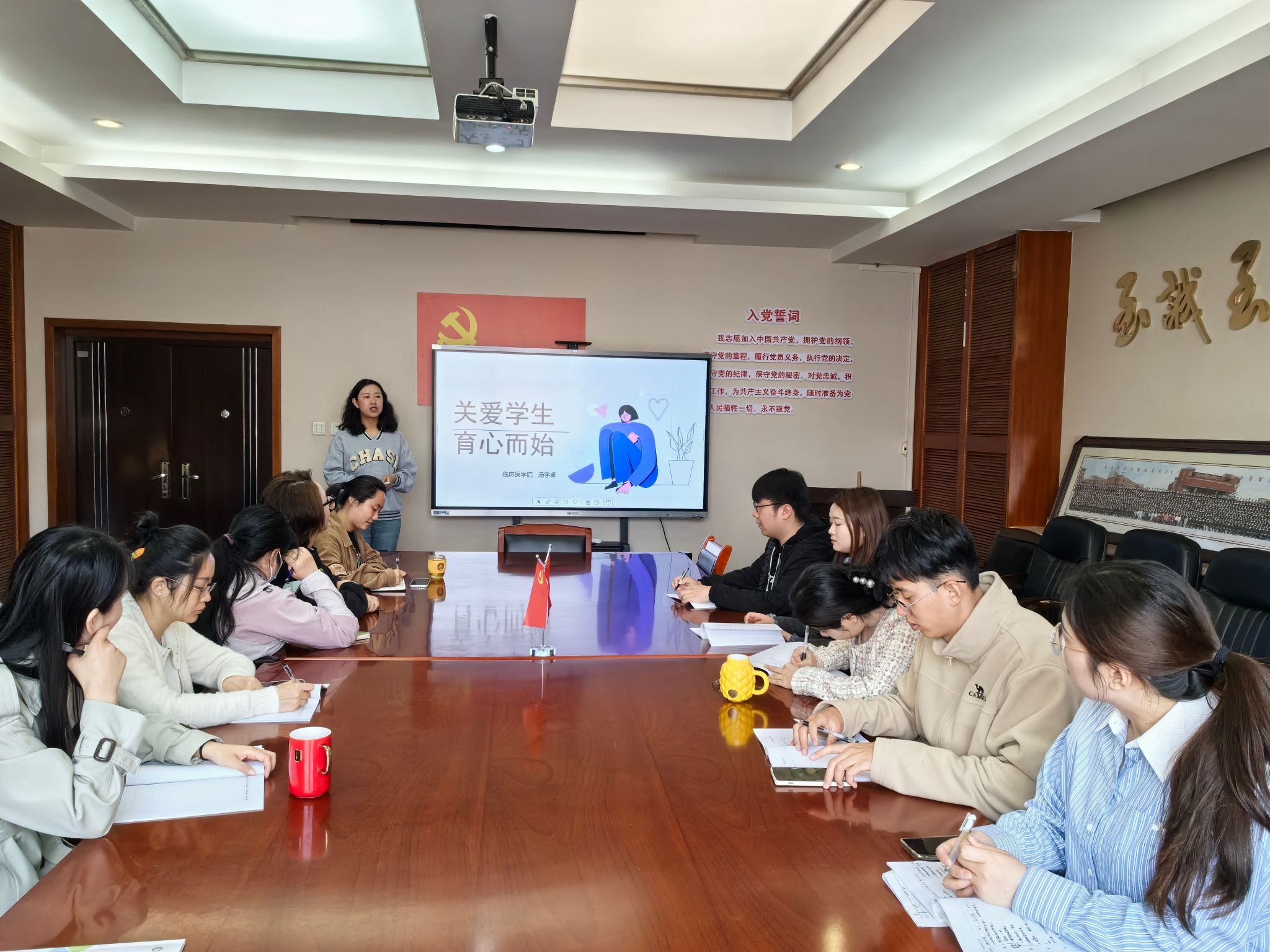 为进一步提升我院辅导员的心理育人水平,增强对学生心理危机问题的识别和应对能力,做到早发现、早干预。4月8日,我院开展了心理健康教育与危机干预专题辅导员培训。此次培训由学院辅导员汤宇卓主讲,主题为《关爱学生,育心而始》。