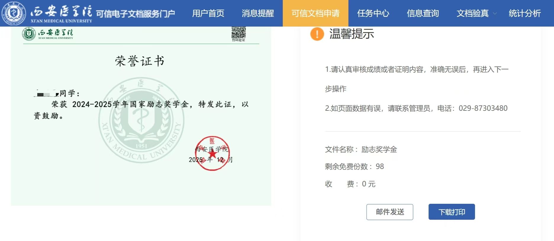 我为学生办实事|奖学金证书电子化已完成,请获奖同学及时下载查收